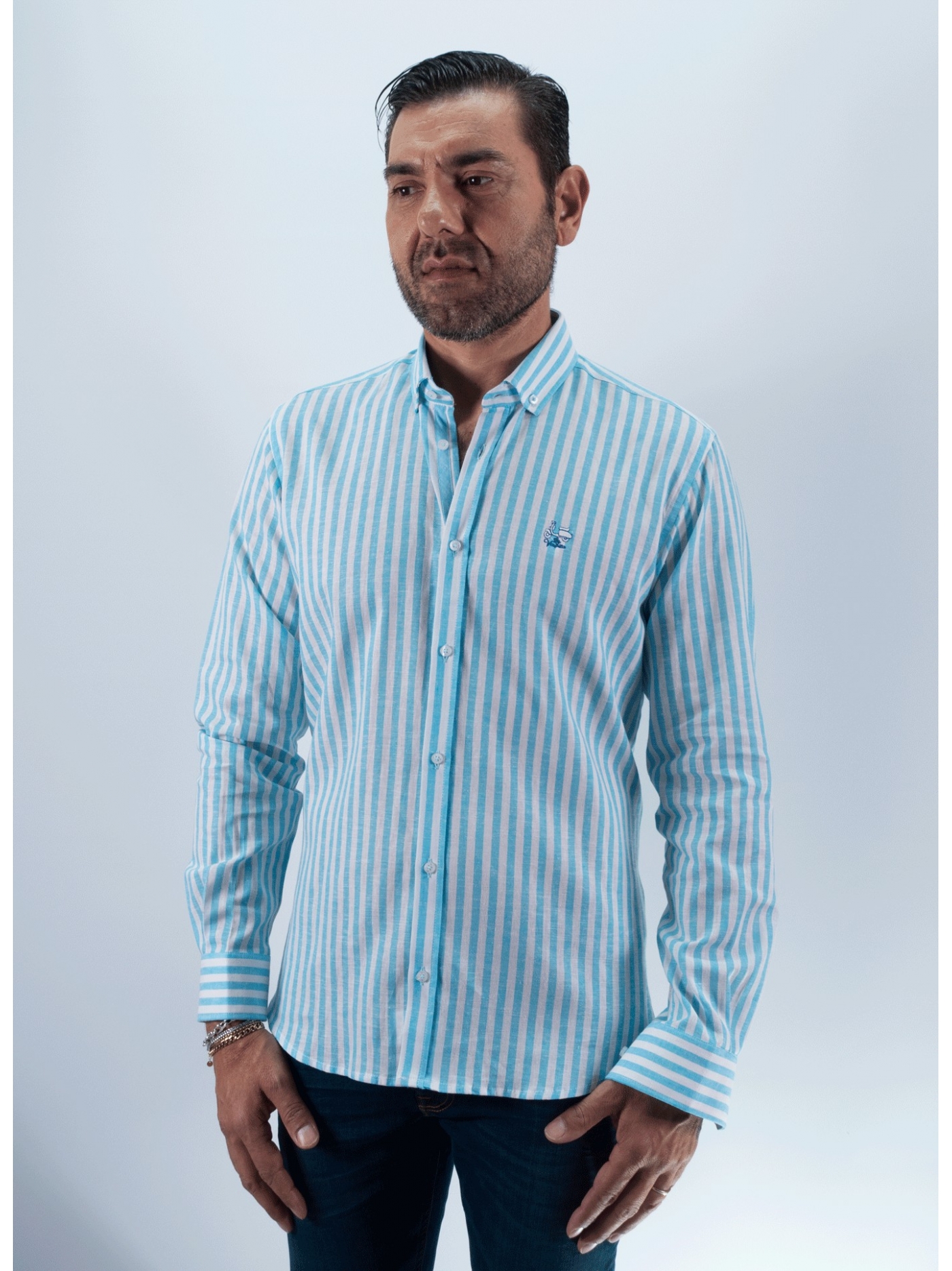 LISBON STRIPED SHIRT LA VESPITA TURQUOISE