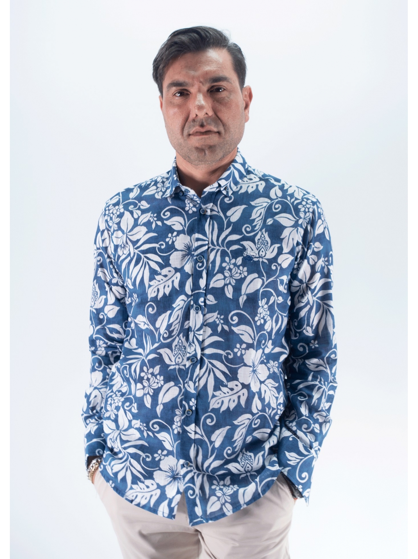 CAMISA CRISÂNTEMOS LA VESPITA NAVY