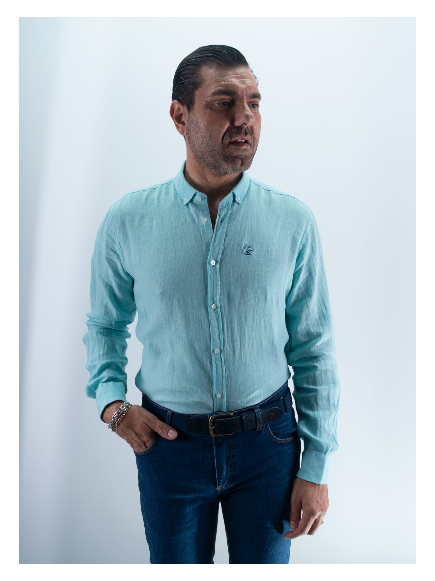 CAMISA DE LINHO 24 LA VESPITA ÁGUA DO MAR