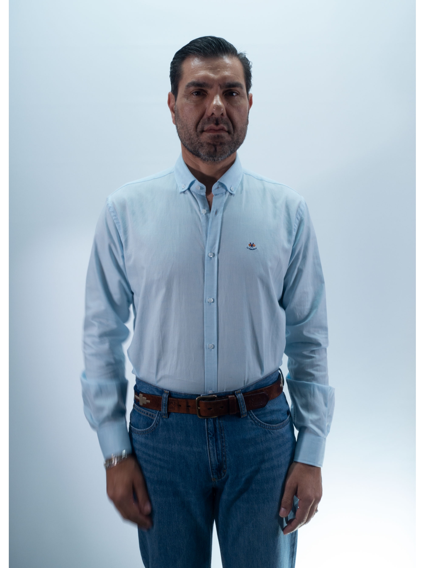 LA ESPANOLA CAMISA DE COTOVELO LISA AZUL CLARA