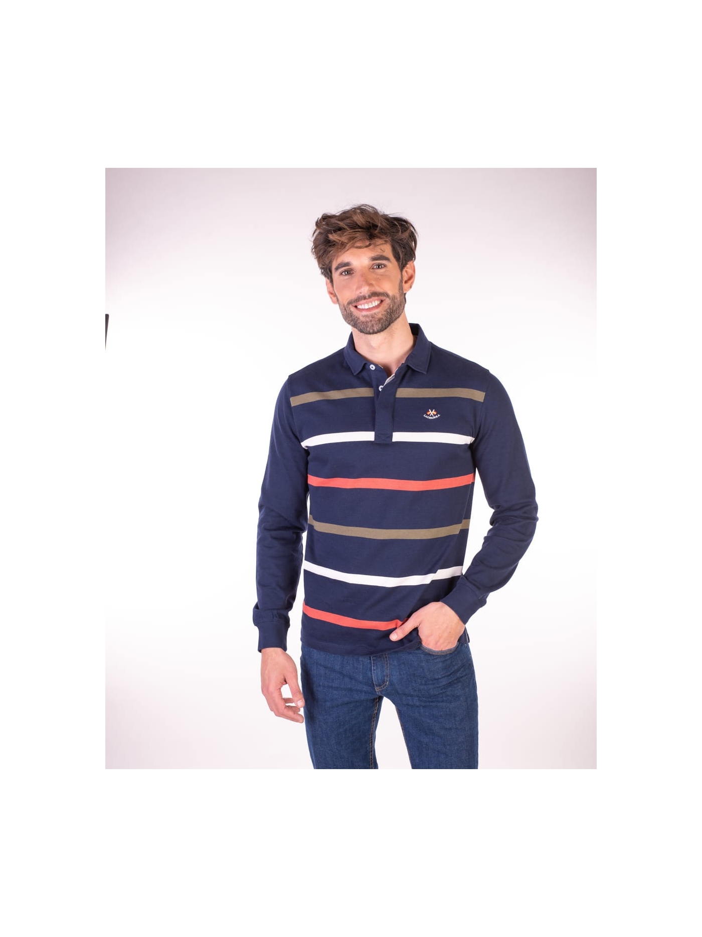 PÓLO COM RISCAS AZUL-MARINHO LA ESPANOLA