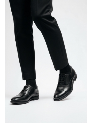 Sapato de cerimónia em pele com biqueira mais larga.