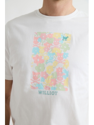 T-SHIRT BRANCA COM ESTAMPADO DE FLORES GRANDES